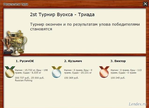 Третья подряд победа в триаде с пойманными 2-мя рыбами.
