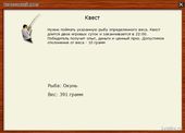 Квест: Окунь 421 гр. Локация: Тихий закуток Снасть: Поплавки. Наживка: Червь прикорма нет Опыт: 35000